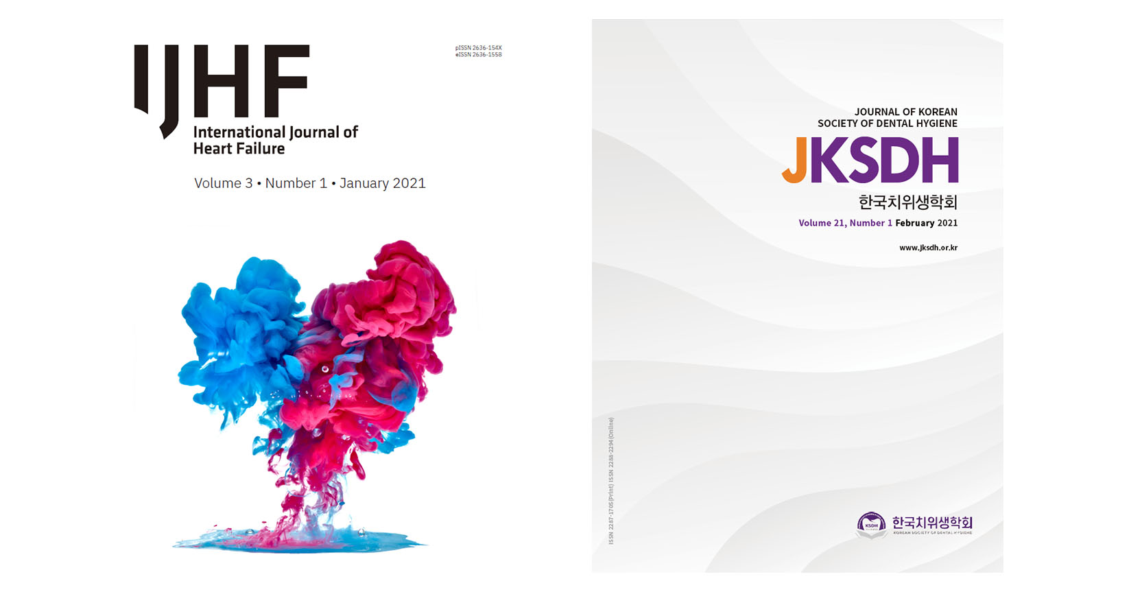 Journal of Korean Society of Dental Hygiene International Journal of Heart Failure (IJHF)는 국내 최초의 심부전을 다루는 영문 국제 학술지입니다. IJHF는 심부전 분야의 다양한 질환들에 대한 지식과 경험, 그리고 기초 및 임상 연구를 공유하기 위하여 만들어진 학술지이며, 이외에도 간호, 심장재활, 보건 경제학, 의료 정책 등을 포함하고 있습니다. 본 학술지는 국내외 심부전 분야 연구 활성화를 위하여 2019년 10월 1호를 발행하였고, 2021년 4월 7호 발행을 앞두고 있습니다. 2021년 대한의학학술지편집인협의회에 신규 단체회원으로 인정받게 되어 영광이며, 앞으로도 심부전 분야의 대표 저널로의 발전과 대학의학회 인정 학술지로 위상을 올리기 위하여 최선을 다하겠습니다. 의편협 단체회원의 많은 성원과 관심을 부탁드립니다. Journal of Korean Society of Dental Hygiene Journal of Korean Society of Dental Hygiene (http://www.ksdh.or.kr/)은 한국치위생학회(Korean Society of Dental Hygiene)의 공식 학술지로, 구강건강 관련 예방과 교육 전반에 대한 연구성과를 1년에 6회 출간하는 학술지입니다. 본 학술지는 2000년 창간호를 시작으로 2001년 ‘J Korean Acad Dental Hygiene Education’으로 출간된 이후, 2010년에 ‘J Korean Soc Dent Hyg’으로 전환하여 2021년 4월에는 21권 2호 출간을 앞두고 있습니다. 학술 분야는 구강건강 관련 예방과 교육을 중점적으로 대상자의 행동변화를 추구하기 위한 치의학(구강보건학, 치주학, 구강내과학, 구강방사선학 등), 생물학, 교육학, 심리학, 사회학 등의 다양한 지식을 종합한 복합 학문적 성격의 연구들을 다루고 있습니다. 많은 성원과 관심 부탁드립니다.