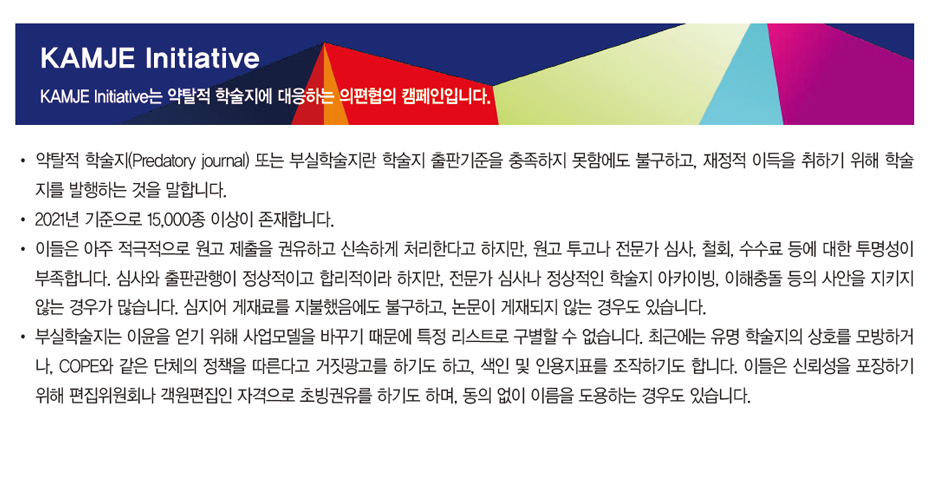 KAMJE Initiative는 약탈적 학술지에 대응하는 의편협의 캠페인입니다.